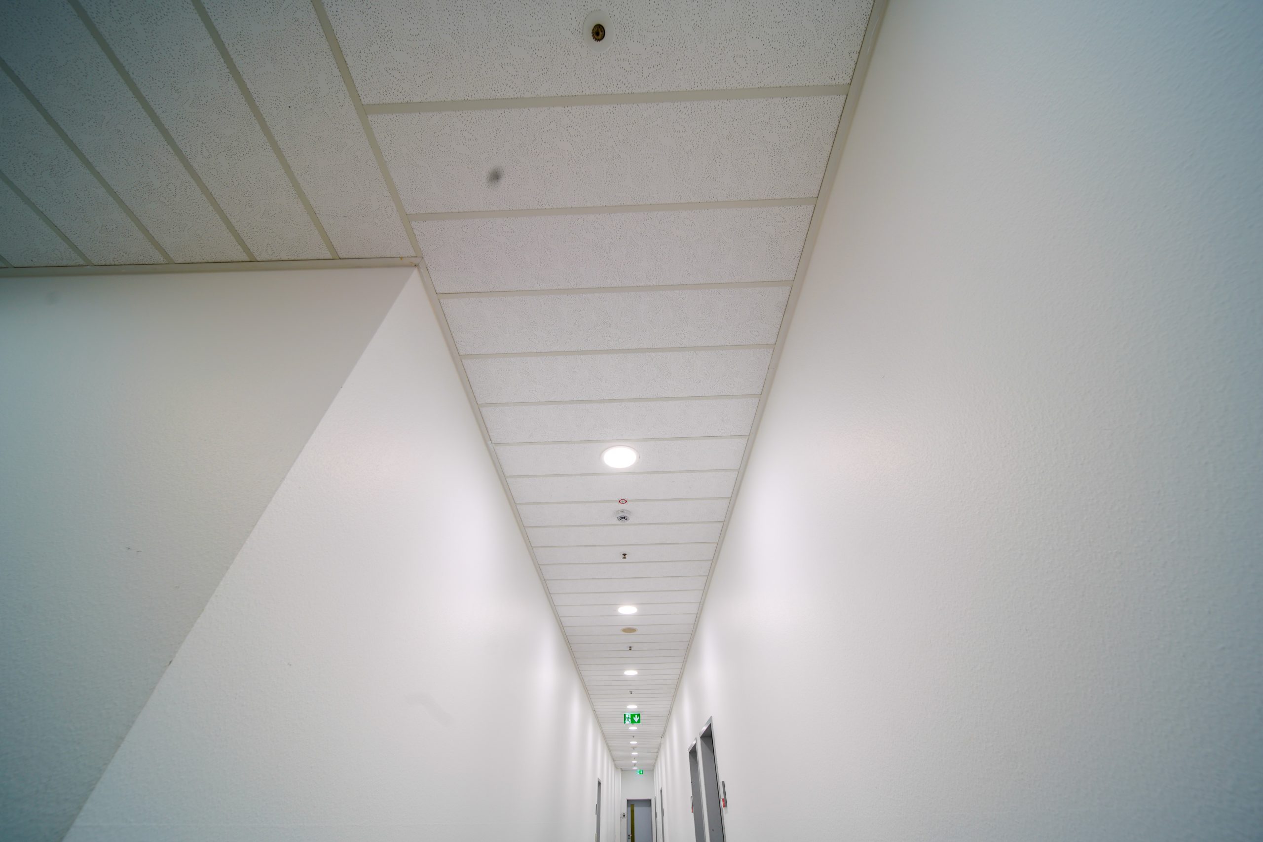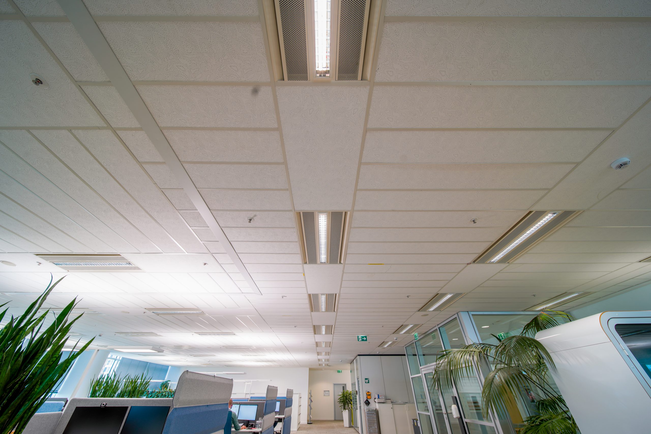 Ertüchtigung der Bestandsbeleuchtung mit 1086 Lichtpunkten in insgesamt 10 Büroetagen ohne Eingriff in die Deckenkonstruktion. Die Klimaanlage in der Europazentrale der Kia Deutschland GmbH ist in die T5-Beleuchtungsanlage der Rasterfelddecke integriert und übernimmt zusätzlich die Funktion einer Sicherheitsbeleuchtung.